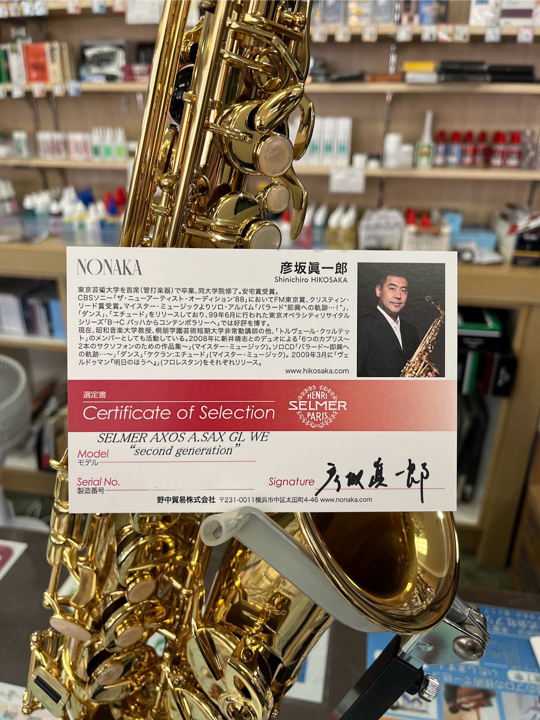 大人気セルマーのアルトサックス、AXOS GL WE second generation、サクソフォン奏者彦坂氏による選定品です。
